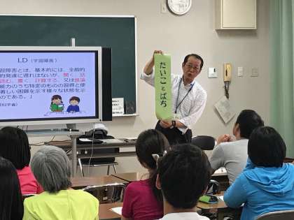 午後から、講師の先生をお招きして、特別支援教育についての研修を行いました。講師の先生の実践に基づいた考え方や指導方法等、多くのことを学ばせていただきました。