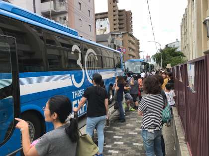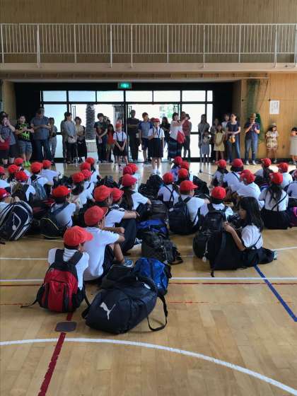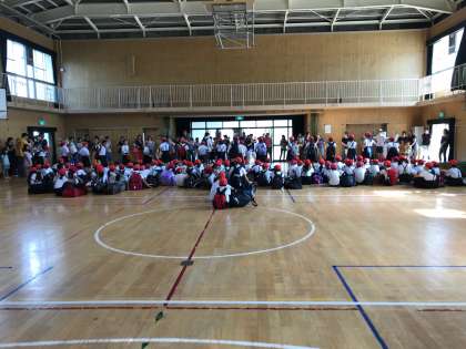 おはようございます。8時54分、ハチ高原に向け出発しました。この度は、昨日から台風の影響でご心配をおかけし、申し訳ありませんでした。また、お見送りにも大勢の保護者の皆さまがお越しくださいましてありがとうございました。