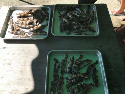 とったあまごをその場で焼いてくださり、食べました。美味しくいただけたようです。