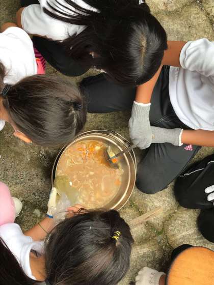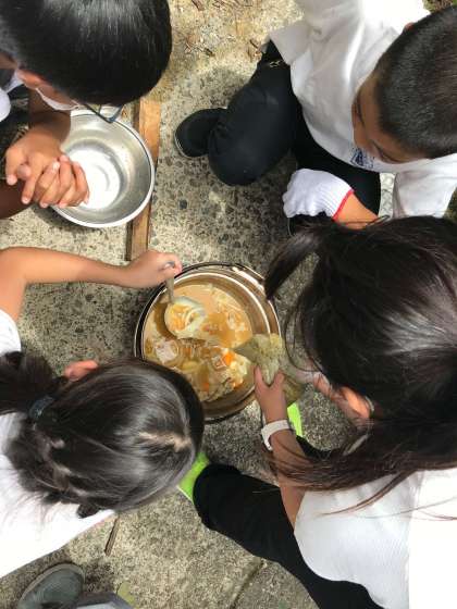 「いただきます!」なんとか自分たちで、作りきったカレー。さて、お味は?お家で聞いてみてください。