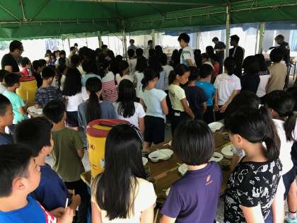 晩ご飯は、BBQでした。次から次へとお肉が出されたことで、子どもたちは、ややギブアップ気味でしたが、なんとか食べられる子で頑張りました。