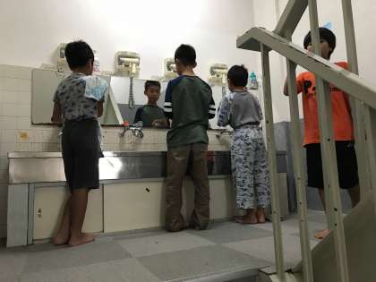 いよいよ帰校する朝を迎えました。昨夜少し体調を崩した子がいましたが、今朝は元気に活動しています。朝の集い、朝食、焼き板作りと最終日のプログラムを進めています。