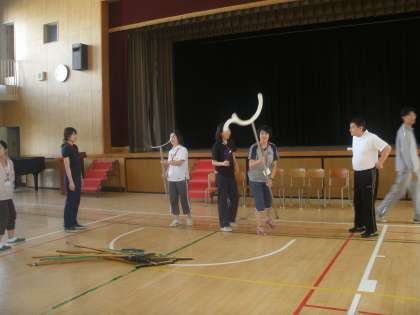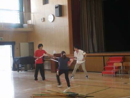 城東警察署の警察官の方に講師になっていただいて、防犯研修会をしました。「さすまた」の使い方、侵入者への対応の仕方、子どもの命、教職員自身の命を守るためにどう行動すればよいかなど教えていただきました。