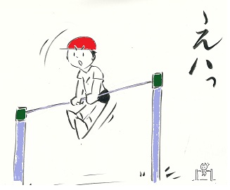 運動場にある体育の用具、遊具。ジャングルジム、雲梯(うんてい)、のぼり棒、鉄棒、ろくぼく、タイヤ・・・。いっぱい使って、体作りをしてほしいですね。