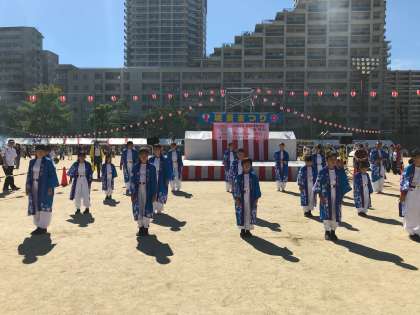台風の接近で、1日順延になりましたが、城東区民まつりが開催されました。非常に暑い中、本校の子どもたちも南中ソーランの踊りで参加しました。