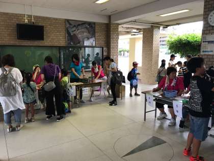 天候が危ぶまれましが、本日、地域の青少年指導員、子ども会、保護者、PTAの皆さんのご尽力により、ワンデーキャンプを行いました。たくさんの子どもたちが参加しました。夕食用の野菜切り、プール、クラフト、DVDなど盛りだくさんのプログラムで、楽しさがいっばいで思い出に残ったと思います。ご準備からごじんいただきました皆様は、厚くお礼申しあげます。ありがとうございました。