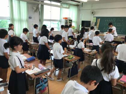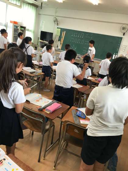 拍の流れにのって、歌と打楽器をあわせる学習をしました。