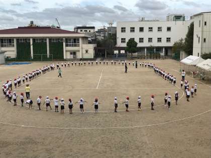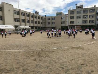 運動場では、団演の練習をしました。自分のポジションを覚えたり、動きを確認しながらの練習でした。講堂では、団演の振付を中心に練習しました。