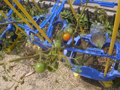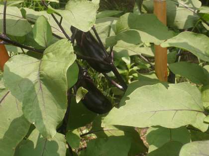 学習園の植物が実をつけはじめました。トマト、なす、じゃがいも。いきいきした学習園になっています。
