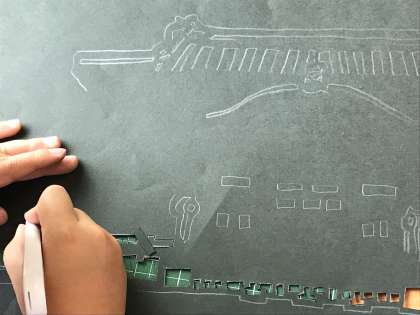 切り絵の作業中です。とても細かい部分の切り抜きなど、みんな真剣そのものでした。