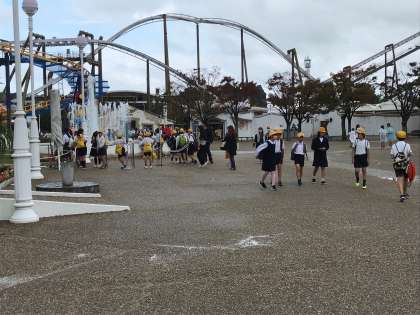 雨が降ったり、止んだりして子どもたちのお目当のジェットコースター「ピレネー」も動いたり、止まったりでした。でも、その中でも、スペイン村を満喫できたようです。