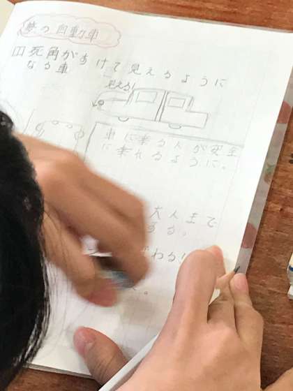 夢の自動車を考えました。介護や子育てに役立つ発想が、多かったようです。