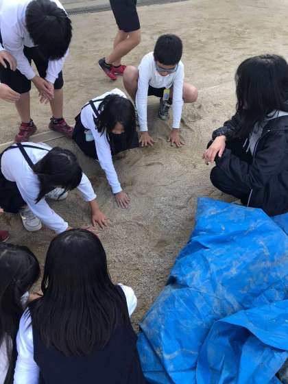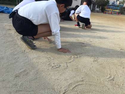 運動場に行って、日向と日陰の地面の様子を学習しました。