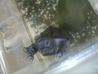 夏休みの間、教室で飼育している生き物は、職員室であずかります。昨年のホームページで紹介したカメが、今年の夏も職員室に帰ってきました。夏休みの間、ホームページでも時折そのかわいいところをお見せします。なお、名前は「亀吉(かめきち)」というそうです。