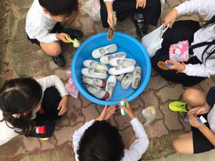 上靴を洗いました。今日から、お家でも一人で洗えるかな?