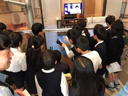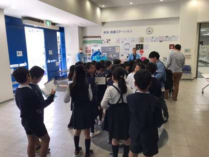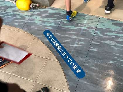 津波高潮ステーションに行きました。和歌山県沖で地震が発生し、津波が押し寄せるという想定を、映像によって体験できる場所では、あまりのリアリティさに子どもたちは、かなり驚いていました。