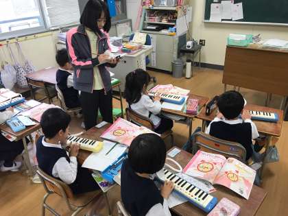班ごとにピアニカのテストをしました。
