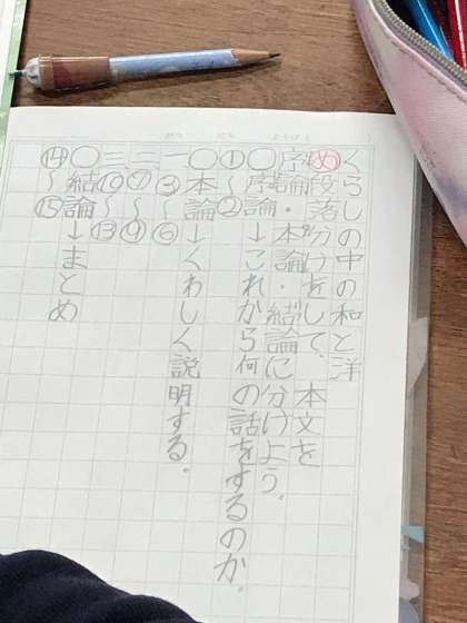 今日から、くらしの中の和と洋の学習で、段落分けを班で話し合いました。