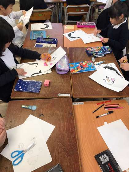 冬のくらしで、お正月の遊びにある福笑いを作りました。