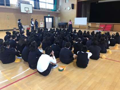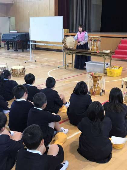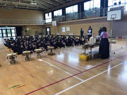 民族講師の先生にきていただき、韓国朝鮮の遊びや楽器の体験をさせていただきました。6年生〜その1