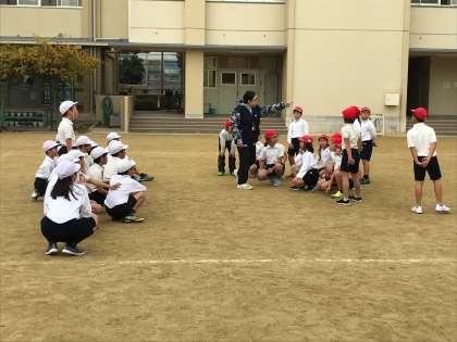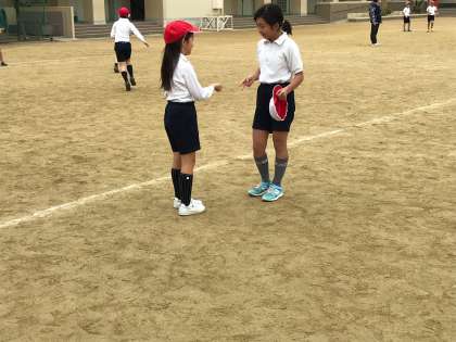 赤白に分かれて、つかまったらジャンケンをして、負けたら勝った方のチームの帽子の色に変えるゲームをしました。結果は、同点で、結局、ジャンケンで赤帽子チームの勝ちでした。