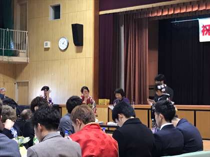 区長さんの挨拶、当時の校長先生のう「おめでとうの歌」、担任の先生によるタイムカプセルの開封を行いました。