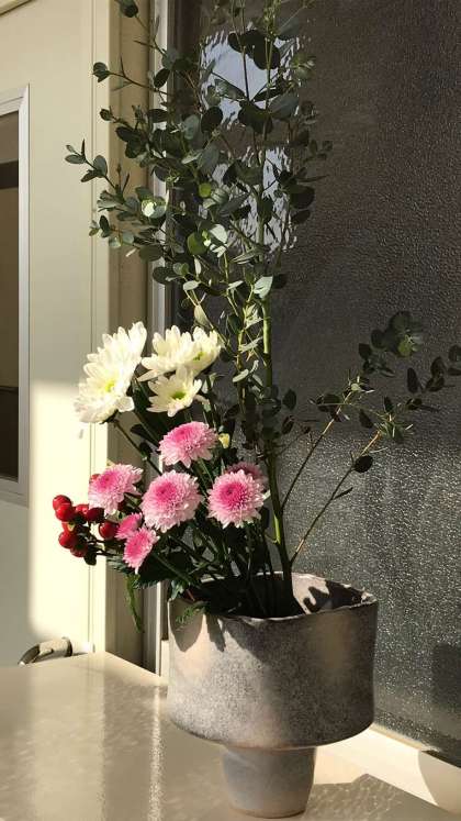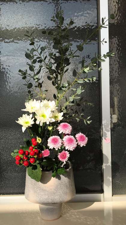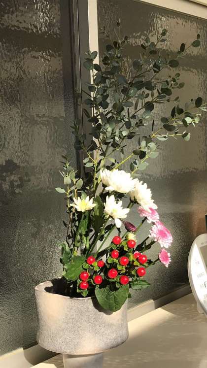 今日も寒い中、お花を生けに来てくださいました。見ていると、心が和んできます。