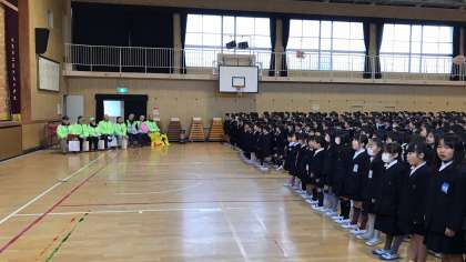 登下校時の見守りをしてくださっている皆さんにお越しいただいて、子どもたちとPTAの皆さんから、感謝を伝える感謝の会を行ないました。
