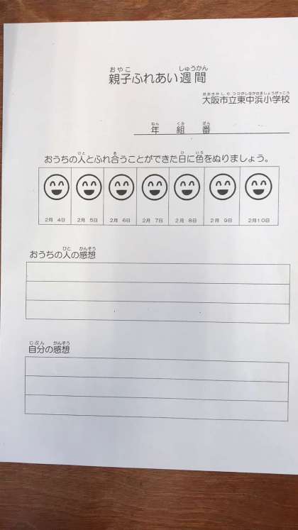 来週から親子ふれあい週間が始まります。ご家族でできるだけ多くのふれあいができることを願っています。