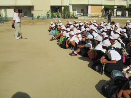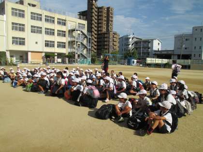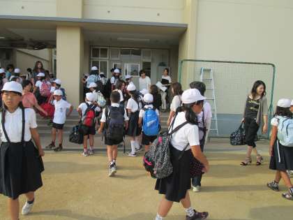 学校に帰ってきました。たくさんのお家の方に迎えていただきましたね。