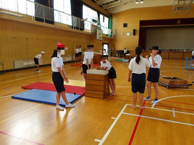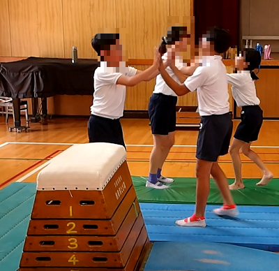 そもそもマット運動が苦手な子、跳び箱が苦手な子、音楽が苦手で音楽に合わせて体を動かすなんて・・・、それでも仲間と声をかけ合い、相談し、音楽に合わせた表現運動に取り組んでいました。