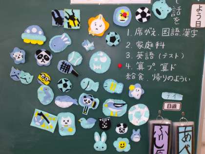 かわいいキャラクターの裁縫作品だけでなく、時代を反映された万博「ミャクミャク」の作品も多く見られました。1学期で習得した技術をしっかり夏休みに遺憾なく発揮したようです!すばらしい!