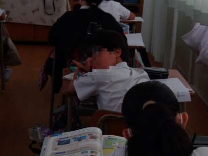 授業の様子を撮りに来たことわかってるんですね。まだまだ反抗期が遠い可愛らしい6年生です。