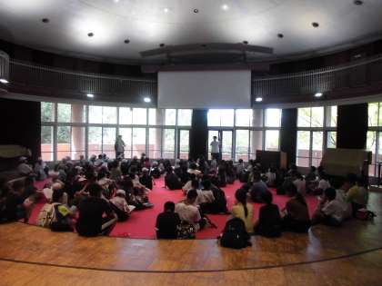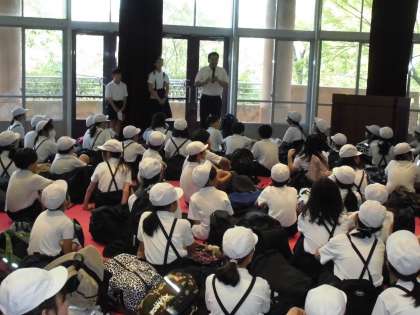 少年自然の家のスタッフの方にあいさつをした後、スタッフの方からの寝具の使い方・片付けの仕方の説明がありました。