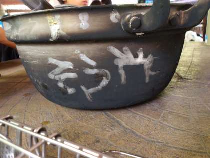 煤のついた鍋の裏に落書きをするのも定番ですね!