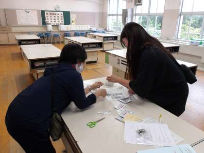 薬剤師さんに来校いただき、養護教諭と教室の空気検査を行いました。