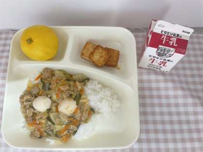 中華丼は、肉も野菜もしっかり煮込まれ、児童にも好評でした。
