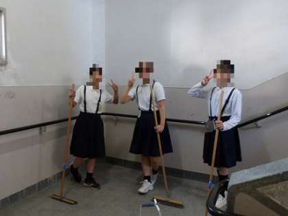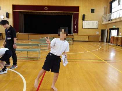 体育館での椅子ならべ、トイレ清掃、階段清掃、がんばってくれました。