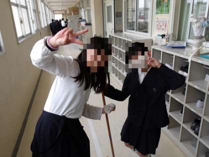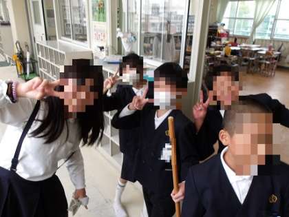 教室、廊下をのぞいてみると、やはり学校が楽しみだったらしく、友達とおしゃべりを楽しむ子、じゃれあう子、「先生写真撮って、ホームページ載せて〜」と様々でした。