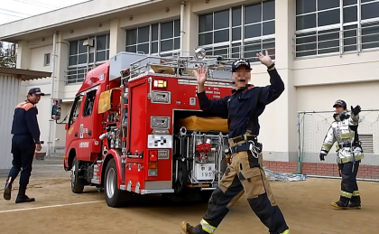 火災ひなん訓練のあと消防士さんからのお話がありました。
