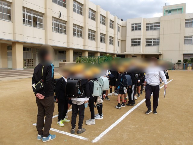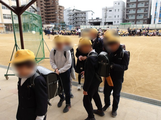 比較的近い地域に住んでいる子供たちが集まり、交通安全についての講話を聞いたあと一緒に下校しました。