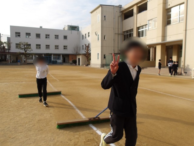 運動場を整備してくれています。委員会活動の時だけでなく、普段の放課後も整備してくれています。いつもありがとう!