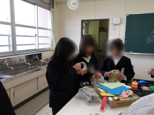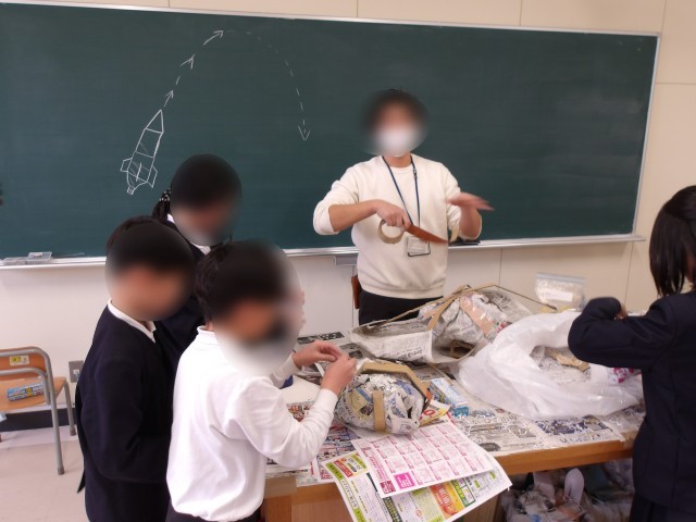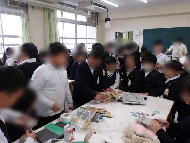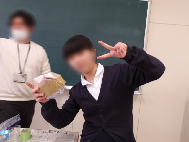 何やら、段ボールやシュレッダー紙をつかって組み立てています。組み立ての中心には、何かを仕込んでいる!?