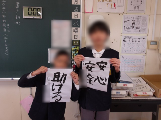 6年生のかきぞめ後の様子です。