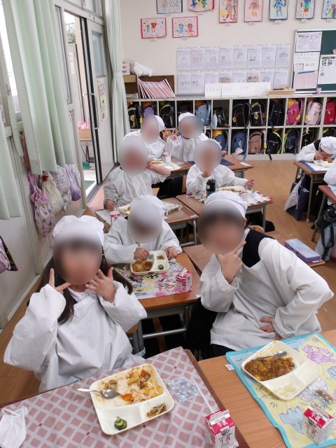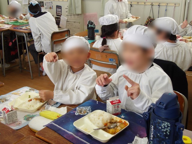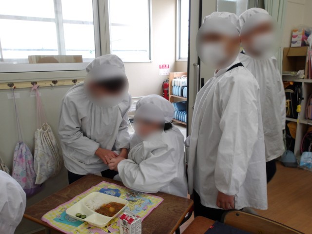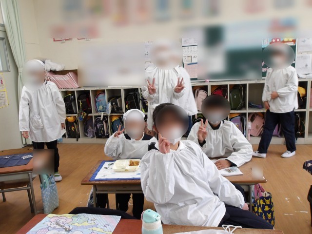 給食室への行き来、配膳は6年生がしてくれました。1年の担任も「することがない!6年生がやってくれるとこんなにスムーズなんや」と驚いていました。