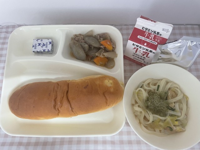 大阪らしく、三角に切って甘く煮た揚げと、とろろ昆布の入った「なにわうどん」は、児童に大人気でした!