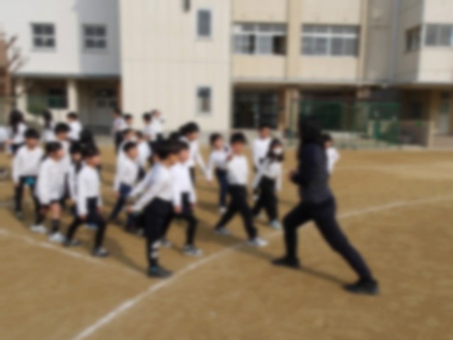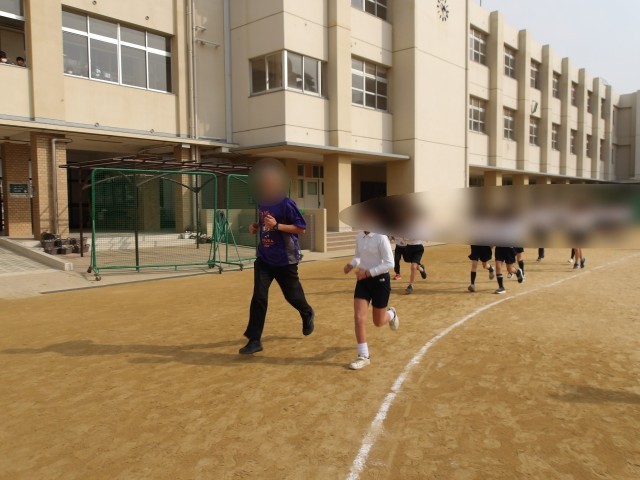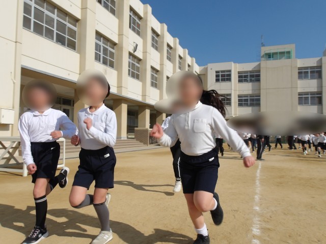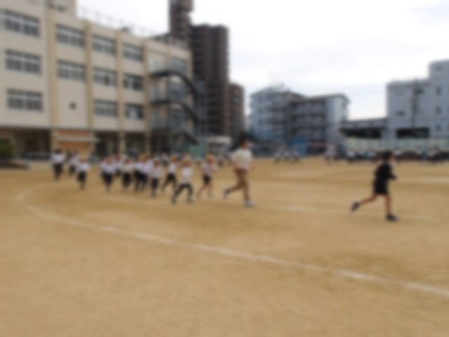 5,6年生の運動委員会のお兄さん、お姉さんが各クラスの先頭で1周目を先導してくれました。