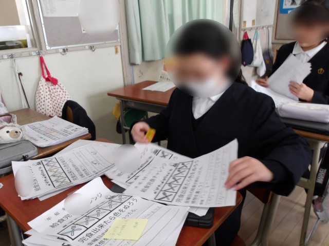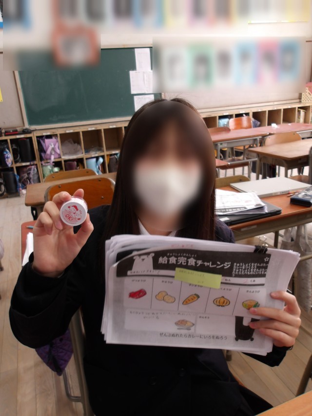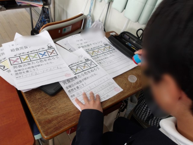 給食週間がありましたが、全児童の「給食完食チャレンジカード」の添削チェックをしてくれていました。
