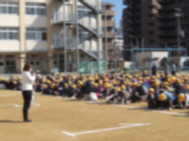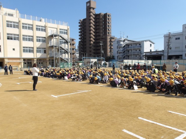 その後に運動所に出て、近所にすむ友達、お兄さんお姉さん、下級生を確認し、列を作って下校しました。
