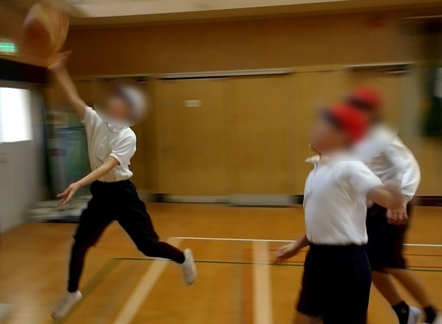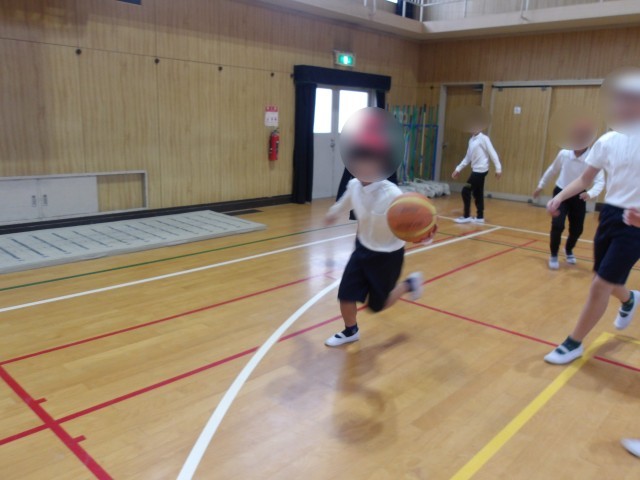 今回はバスケットボールをしました。バスケットボールを習っている児童も多く、見ていてレベルの高い試合でした。